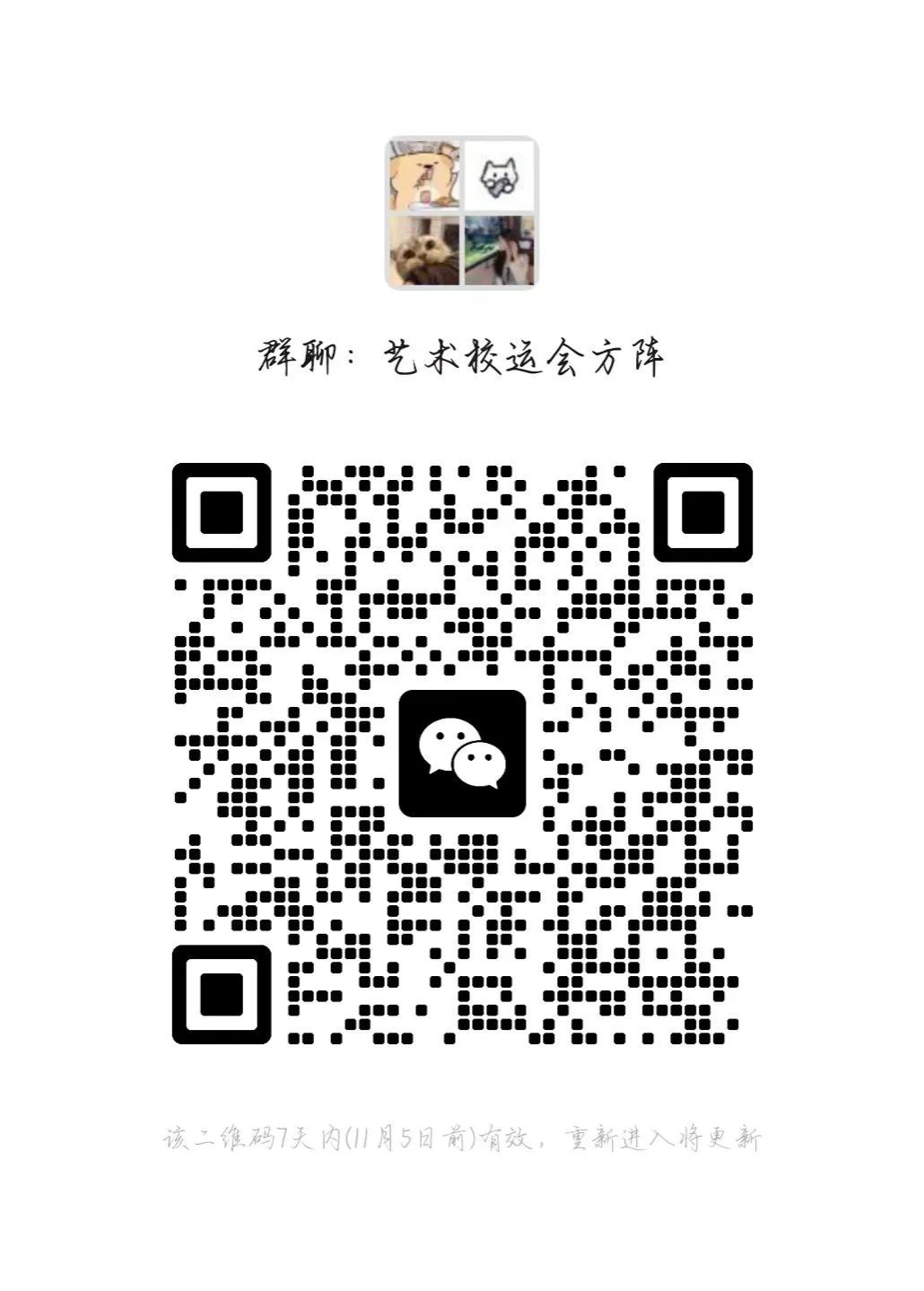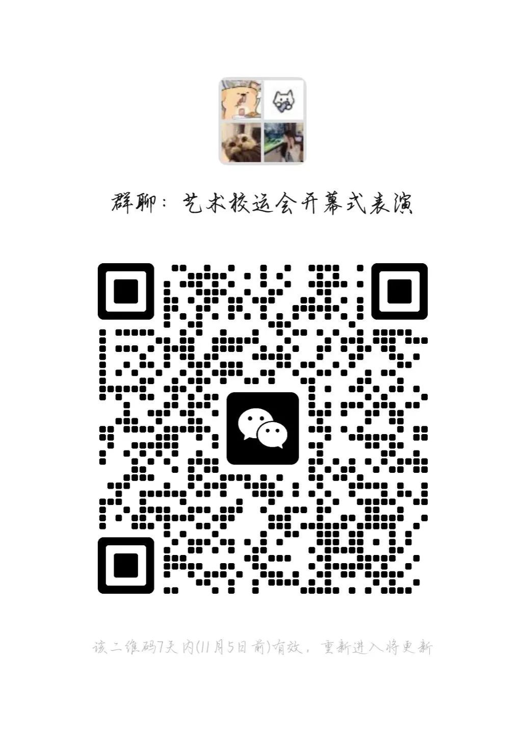 请有意向的同学于11月8日前将节目名称、表演形式、参与人数以及简要介绍(整合在一个word文档)发送至yssjxytwxsh2@163.com报名成功的团队可扫码进群,后续会群里通知线下表演时间地点。(优秀作品可获奖状及奖励)
