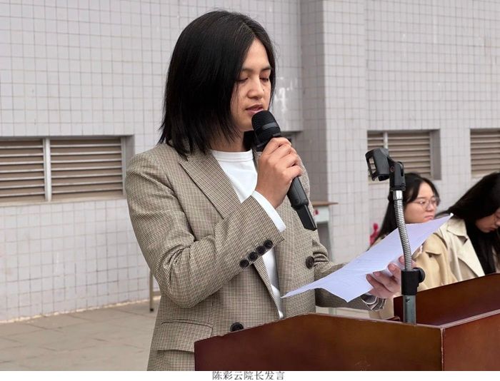 在升完国旗后,首先由陈彩云院长发言:身处伟大时代的浪潮之中,我们每个人都肩负着责任与使命,无论梦想大小,都有绽放光芒的舞台。展望未来,前行的道路或许依旧充满挑战,但只要我们齐心协力,怀揣梦想,以奋斗为底色,定能披荆斩棘,绘就绚丽蓝图。