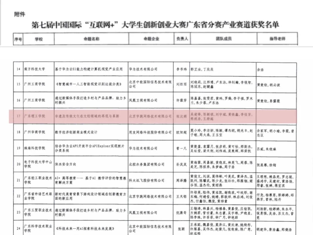 3044永利集团官网艺术系张汶娟同学团队在第七届中国国际“互联网+”大学生创新创业大赛广东省份赛产业赛道中以解决命题“非遗及传统文化在文创领域的再现与革新”方案获银奖,特此祝贺!