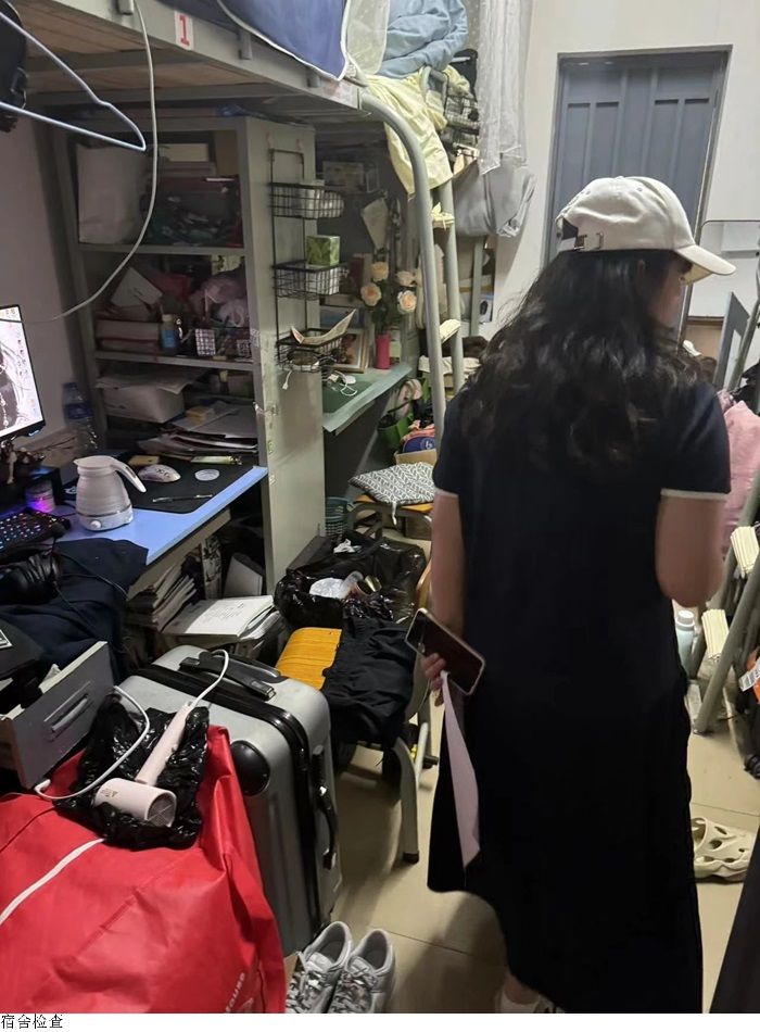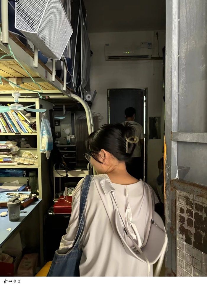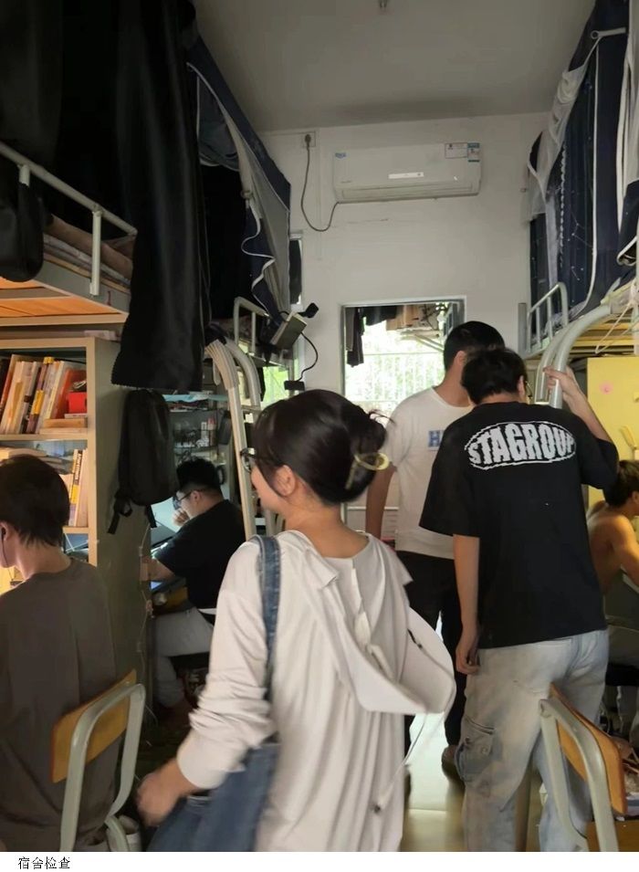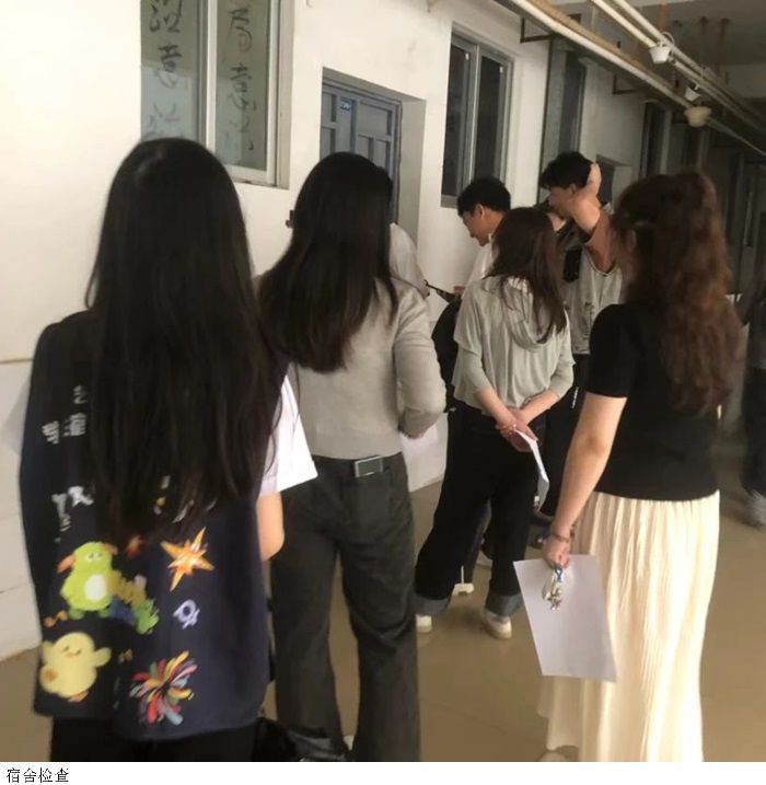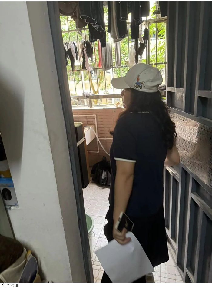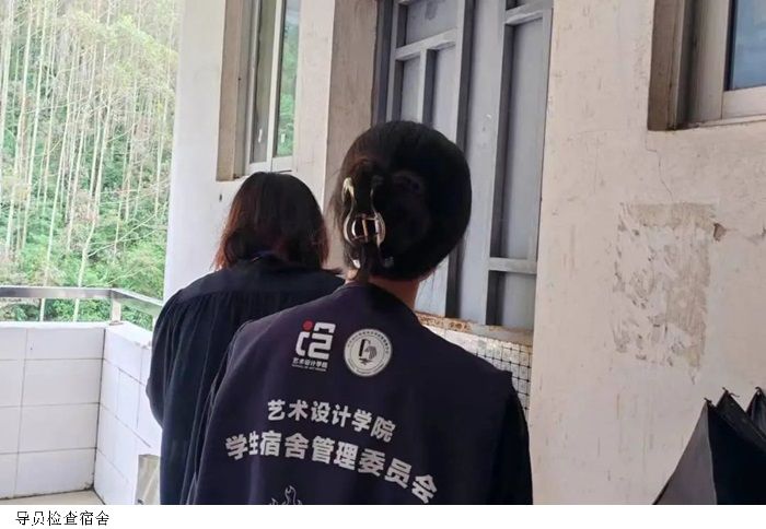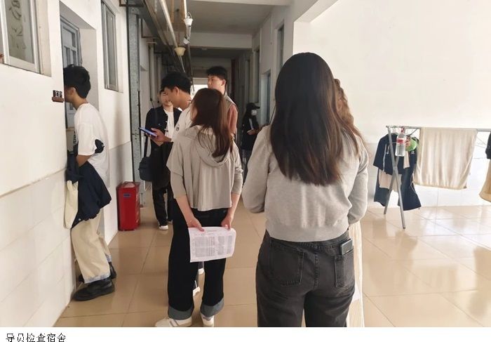 辅导员老师和“宿管会”工作人员认真检查每间宿舍的卫生状况、安全情况以及学生们的日常居住环境同时,对于发现有问题的宿舍,当场记录并要求学生立即整改,确保学生宿舍的安全。
