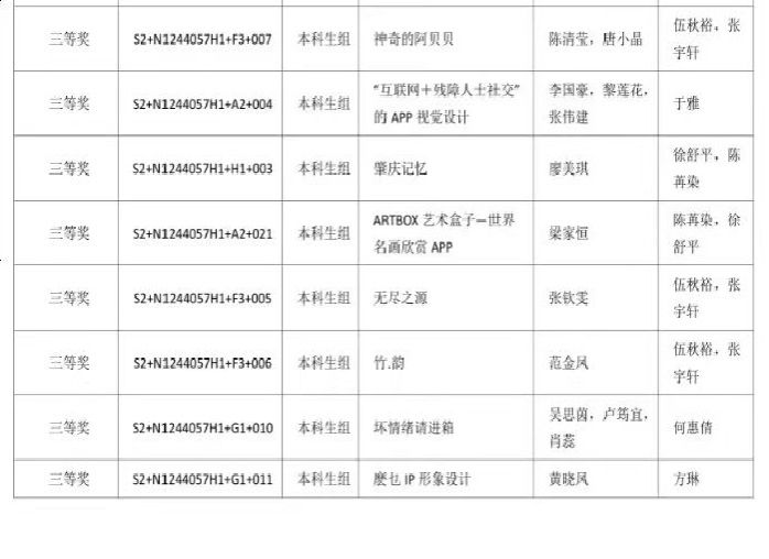 学生参赛作品经过激烈的校赛选拔,有80件作品进入到广东赛区。其中,18件作品获得省级、国家级奖项,获国家级二等奖1项,国家级三等奖1项,省级一等奖2项,省级二等奖5项,省级三等奖9项的好成绩,充分展现了学校在艺术设计领域的办学水平与人才培养质量。