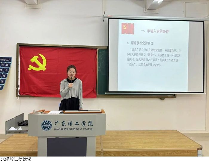 党员教师张海玲进行讲解党员的发展工作细节,端正入党动机,帮助争取早日入党。