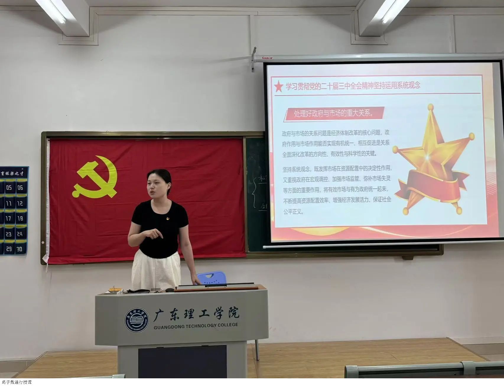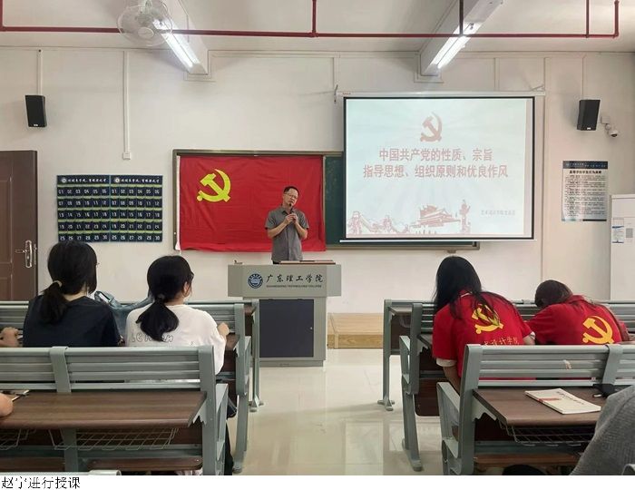 3044永利集团官网党总书记赵宁进行对中国共产党的性质、宗旨、指导思想、奋斗目标、组织原则和优良作风教学楼讲解。