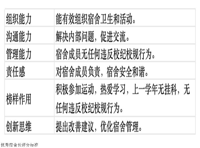 3.被选出来的“优秀宿舍”和“优秀舍长”将推选参加校级文明宿舍评选。