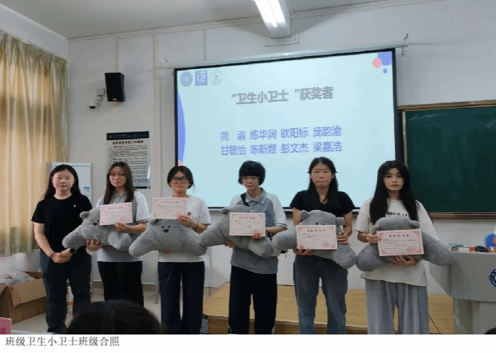 会议下一项,由赵宁书记、葛子傲、陈诗君老师为获得“卫生先进班级”的班级进行颁奖;由梁艳霞、魏佳佳、赵燕芳老师为获得“班级卫生小卫士”的同学进行颁奖;由段思思、高凡老师为获得“卫生先进个人”的同学进行颁奖;由高凡老师为获得“优秀工作者”的同学进行颁奖。
