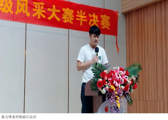 首先,由路正玉老师致开幕词。这次风采大赛充满激情洋溢着青春的活力,激励着准备比赛的班级,表明了对这次风采大赛的期待程度之高。接下来,是班级的风采展现时刻,每一个班级都给我们带来了最精彩的表演,歌声萦绕在每一位观众的心中。班级的风采尽显青春活力,这场比赛因你们而变得更有意义,今夜终将成为我们难忘的回忆。最后,由蔡文锋老师做总结,每一个班级都以最好的精神面貌来对待这一次的比赛,可以感受到每一位同学的青春活力,斗志激昂,如初日般蓬勃生长。此次比赛圆满结束,期待下一次的相遇,青春风采永存。