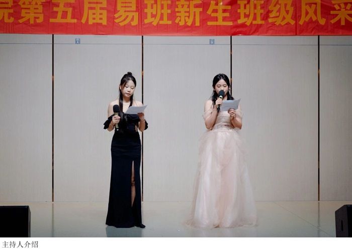 在比赛正式开始前,两位主持人上台介绍比赛的相关赛制和流程,介绍了本次参赛的班级,为比赛的开始拉开了序幕。此次比赛受邀前来的评委老师有:路正玉老师、蔡文锋老师、段思思老师、郭艺文老师、高凡老师、葛子傲老师、魏佳佳老师、陈诗君老师、赵燕芳老师。