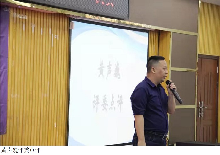 同学们轮番展示作品后,黄声巍评委进行点评:本次大赛旨在激发大学生的创造力,我在同学们的作品中看到了智慧才干和大学生的创新精神、创业意识和创新创业能力。