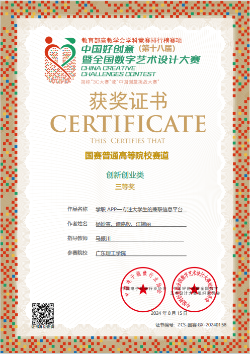 此次大赛获奖,不仅是对参赛学生和指导教师个人能力的高度认可,更是3044永利集团官网在数字艺术设计教育方面的丰硕成果。它充分展示了3044永利集团官网在培养创新型人才方面的卓越成效,也为3044永利集团官网进一步深化教育教学改革、提高人才培养质量提供了有力的支撑。