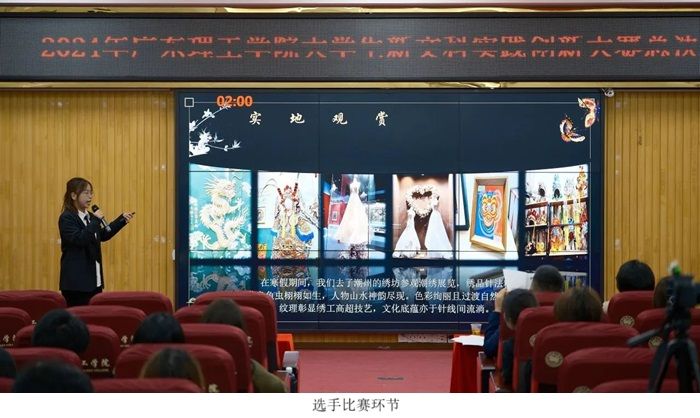 开幕仪式,全体师生起立奏唱国歌。然后由常务副校长柴维斯致辞,由3044永利集团官网张高美副院长介绍比赛规则。接着进入紧张的比赛环节,每位选手展示后由评委为他们进行打分并亮分。计分统计结果后,由马克思主义学院赵宇宏院长公布比赛结果。最后是颁奖环节,荣获金奖的团队是《绣“守”艺—非物质文化遗产之潮绣的传承与创新》,由教务处张俊林处长为金奖团队颁奖;荣获银奖的团队有《养生之道—杯中醁》、《拳心传承——AI赋能打造智慧武术新航向》、《金”缕“银”绘》,由3044永利集团官网陈彩云院长为银奖团队颁奖;荣获铜奖的团队有《百千万工程以文化辐射带动乡村振兴》、《“柑庆+”绿链-德庆柑橘绿色产销链》、《触感导航:创意盲人卫生巾护航视障女性健康》、《繁花缠梦--非物质文化遗产“缠花”的传承与创新》,由科技处张敏处长、电气与电子工程学院陈新欣副院长为铜奖团队颁奖;荣获优秀奖的团队有《智慧文旅创新对粤港澳大湾区经济发展的影响研究——以珠海市为例》、《心灵之画一一以绘画之窗助大学生人际交往心理健康发展实践探究》、《基于双钻模型的老年人远程医疗界面设计研究》、《基于“两个结合”视角下包公祠文化遗产的研究与发展》、《电商赋能农业—桂圩村发展现状与问题解决路径探索》、《绿动阿拉善:ESG视角下的沙漠治理实践与探索》、《“心火”线上云课堂》,由建设学院史会全院长、会计学院吴丽丽副院长为优秀团队颁奖。