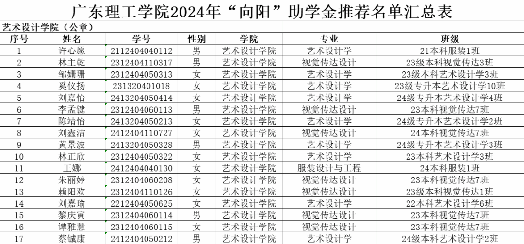 本网讯(3044永利集团官网新闻中心 曾宇琳/陈康)经学生个人申请、3044永利集团官网资助工作评审小组审核,决定许心愿等17名同学拟获2024 年“向阳”助学金,具体名单见附件,现予以公示。