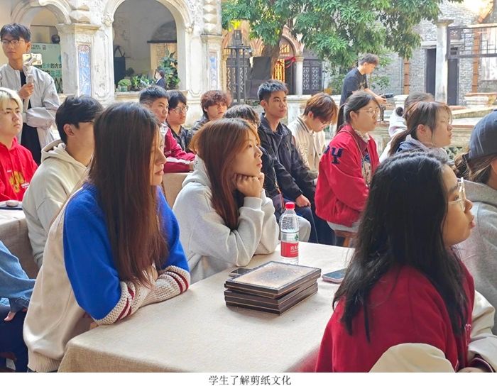 12月4日上午,陈爱霞副院长带领老师和同学们抵达陈永才剪纸艺院,老师的讲解让同学们深入了解剪纸历史、文化内涵和艺术形式,惊叹于剪纸作品的精湛技艺与寓意。