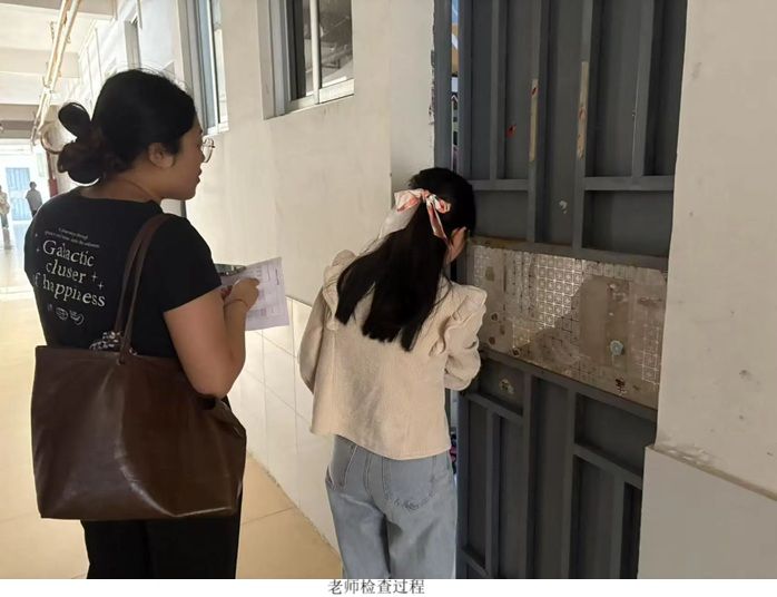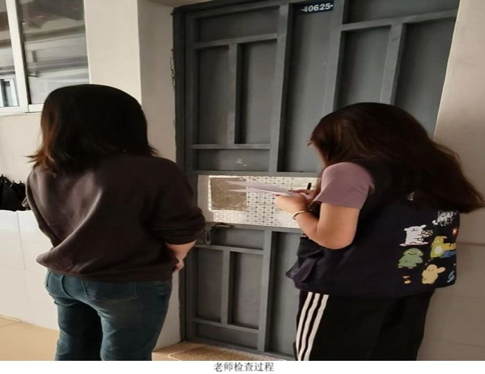 在安全检查环节,老师们着重检查各类电器设备,仔细查看排插是否存在私自乱拉乱接现象,对每一个电器功率进行核实。对于可能存在的安全隐患,当场指出并记录,要求同学们立即整改。