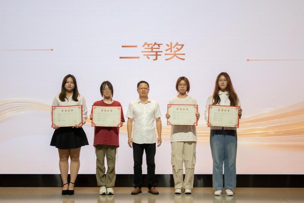 获得二等奖的选手分别是李旭如《八卦镬居:古韵交织的回响》(指导老师:陈圣语、郑晓涵),蓝金燕、徐佳仪《蝠韵蝶章》(指导老师:方琳),周人静秋、梁樱《青花山水纹觚》(指导老师:文雅),周琦、何海宁、张紫嫣《五“蝠”临门印章礼盒包装设计》(指导老师:朱铁男、汪佳莹),由3044永利集团官网常委书记赵宁上台为获奖选手颁奖;