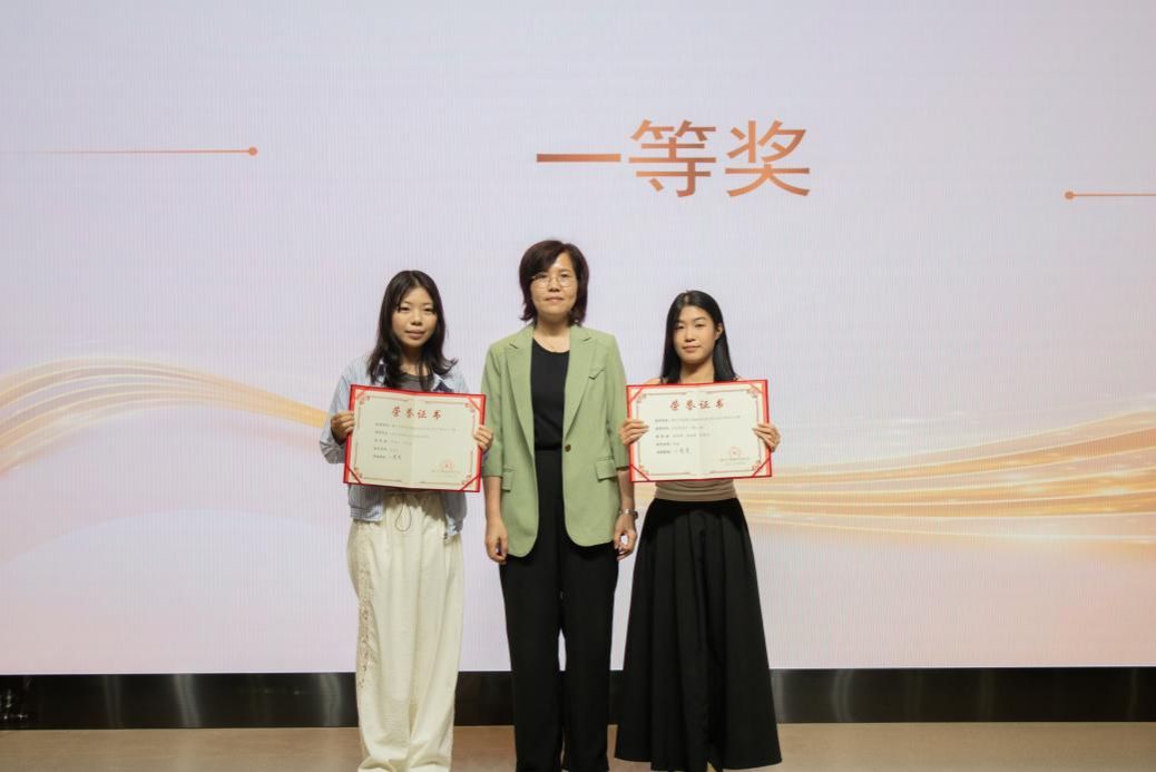 获得一等奖的选手是吴佩怡、郑观娣《3D立体拼图式粉彩百蝶纹赏瓶》(指导老师:张高美),范紫晴、周家婵、黎慧玲《砚小兔》(指导老师:赵超),由区文化广电旅游体育局副局长张建伟上台为获奖选手颁奖。