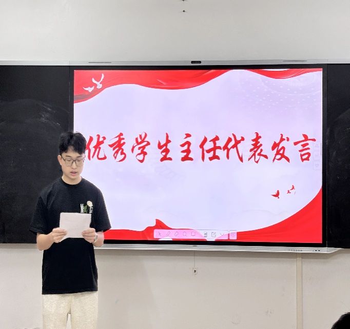 优秀学生主任代表方嘉鹏首先感谢了这次获奖的机会且讲述了自己在工作中逐渐成长的心路历程,接着分享了自己的任职经验并对新干事们进行鼓励。