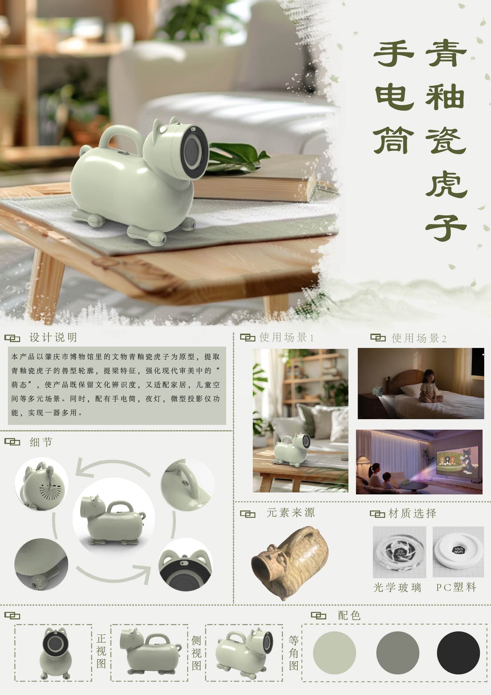 作品名称:《青釉瓷虎子文创手电筒》