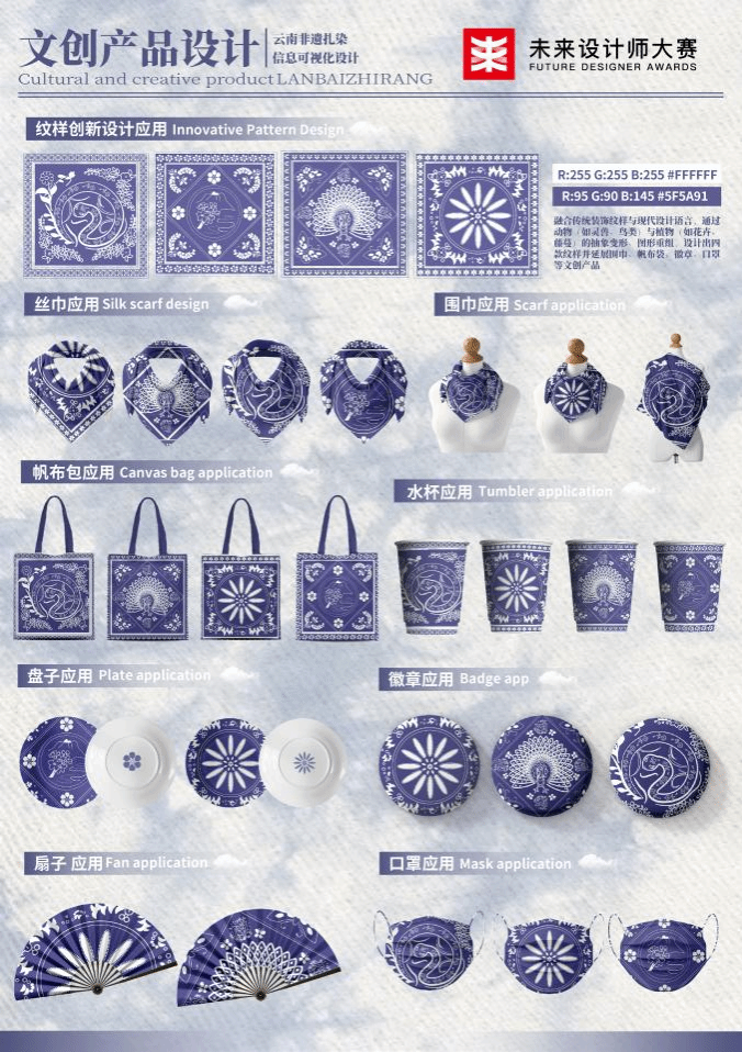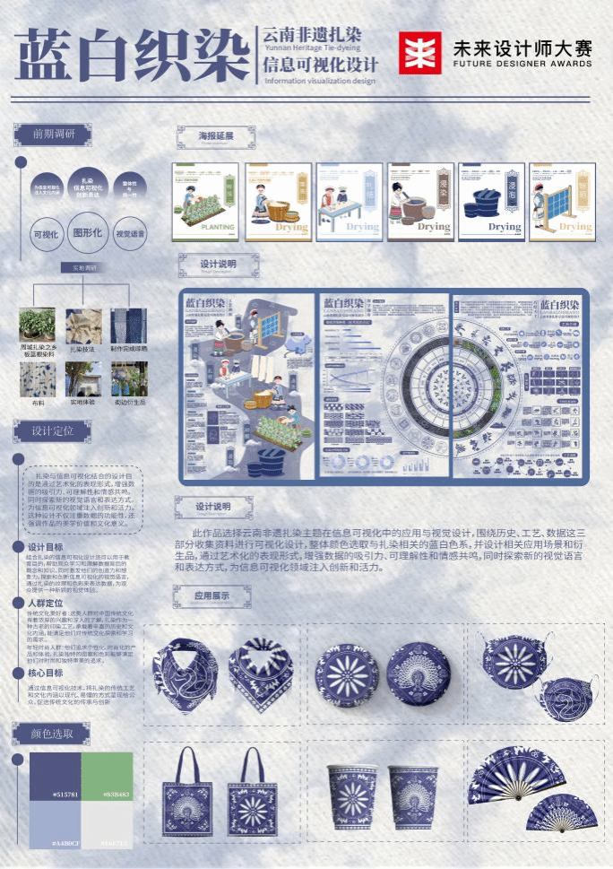 作品名称:《蓝白织柒——云南扎染信息可视化设计》