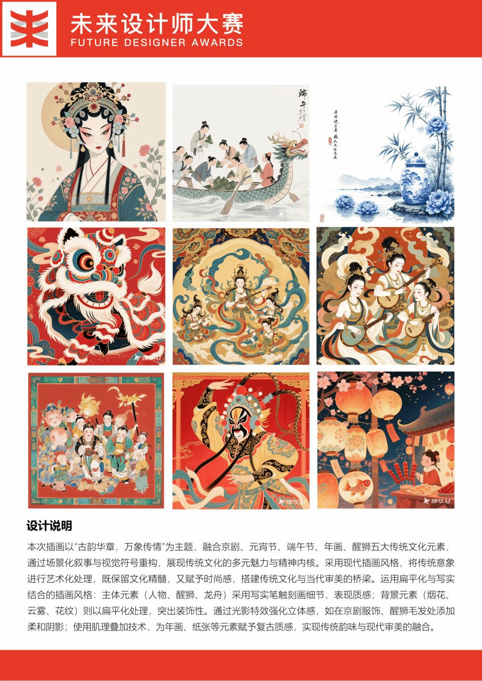 未来设计师·全国高校数字艺术设计大赛(NCDA)是入选《全国普通高校大学生竞赛排行榜》,近20家教育厅认定,“学习强国”学习平台支持,对接联合国国际赛的全国性大学生竞赛。大赛始于2012年,每年举办一届,已连续举办12届,为艺术设计领域的高水平知名赛事,是高校积极参与的重要竞赛之一。本届大赛共有 1,893 所高校参与,征集作品 29 万余件,设有 29 个省级赛区;985 高校和一流大学的参赛率达到 95.2%,设计学学科评估 C级以上的高校全部参赛。参赛作品经过校级赛、资格赛、省级初赛、省级决赛以及全国总决赛等多轮激烈角逐,最终评选出全国赛的一、二、三等奖。