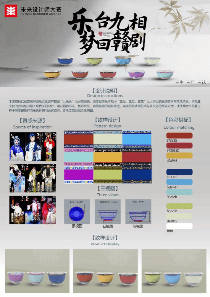 作品名称:《乐台九相—赣剧文化茶杯设计》