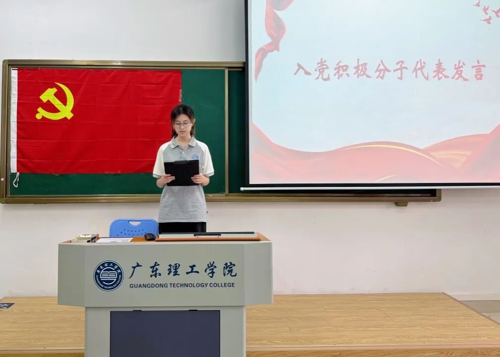 学生代表蓝馨怡发言,她表示新时代大学生应肩负使命,入党积极分子要珍惜培训机会,认真学习,提升觉悟。做到学用结合,思想上紧跟党中央,学习上刻苦,生活中服务集体,将个人理想融入国家事业。