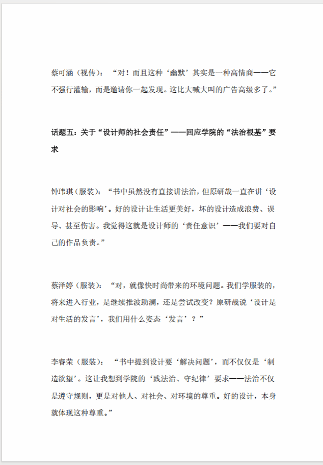书香漫过时光,经典照亮前路。这场以“传承经典文脉·涵养时代新人”为初心的学风建设活动,虽已落下帷幕,但我们与经典的联结从未断线。愿每一位艺设学子都能带着从原著中汲取的思想力量,在未来的设计之路上,以美为笔、以法为尺,继续书写兼具人文温度与创新锋芒的青春答卷,让经典文脉在新时代的设计创作中永续流淌。