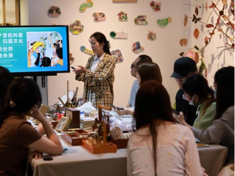 (白鹭文化企业负责人为师生介绍公司)