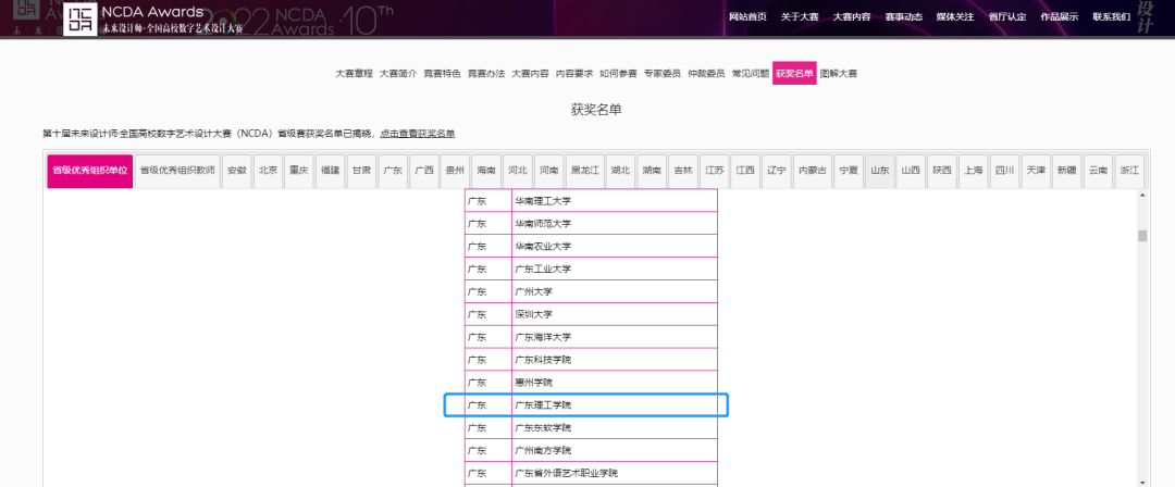 本网讯(艺术系新闻中心 谭瑞/谢雪晶) 近日,3044永利集团官网艺术系学生在2022第十届未来设计师·全国高校数字艺术设计大赛(NCDA)广东赛区斩获佳绩,共获得一、二、三等奖70项,其中一等奖18项,二等奖24项,三等奖28项;3044永利集团官网获得“省级优秀组织单位”奖。