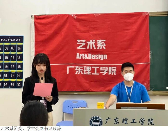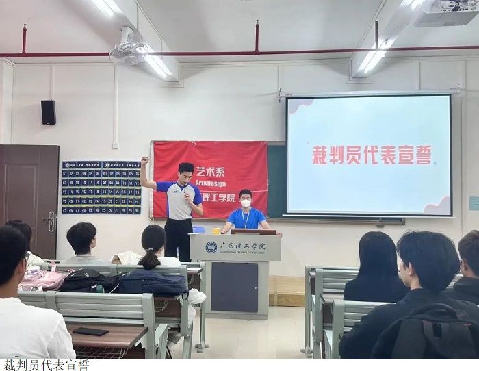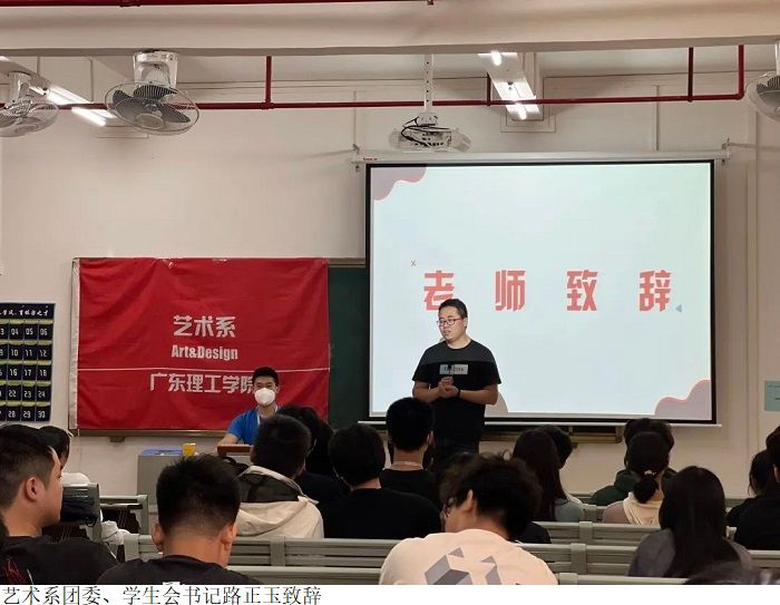 在开幕式中,艺术系团委、学生会主席路正玉老师要求全体工作人员积极投入工作,认真按照各项分工职责,充分发挥主观能动性完成各项任务,努力为各代表队创造一个公平、公正、热情、文明的比赛环境;同时也希望运动员们精神饱满,尊重裁判,尊重对手,团结协作,赛出风格,赛出水平;希望裁判员忠于职守,严肃认真,公平准确,谦虚谨慎,遵守规则,增强安全意识、服务意识、规则意识,为赛场的公平保驾护航。