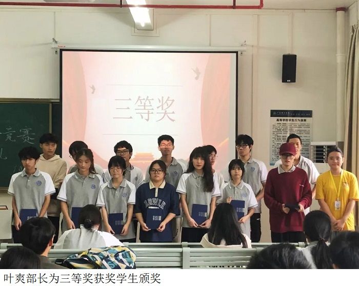 最后,叶爽部长为本次颁奖典礼进行总结。本次军事理论竞赛的举行,让同学们更深刻地了解了我国从古至今的军事实力,了解到祖国雄厚的历史底蕴。希望各位同学要牢固树立现代国防观念,增强爱军拥军的意识,为建设坚固的国防和强大军队尽一己之力。