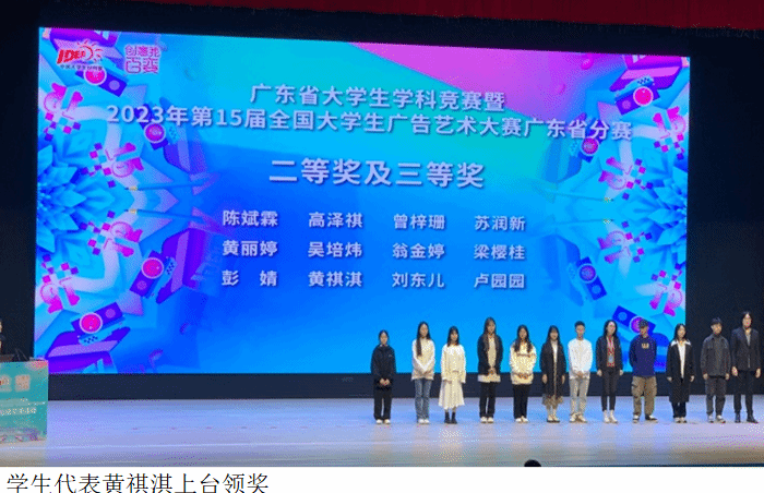 本次活动由广东省教育厅、全国大学生广告艺术大赛广东省分赛区组委会主办,广东科贸职业学院3044永利集团官网、深圳大学传播学院、深圳大学国家级传媒实验教学示范中心承办。多年来3044永利集团官网一直积极组织动员学生参加大广赛,并在指导教师耐心专业的指导和学生积极参与的前提下,3044永利集团官网在本次竞赛中获奖颇丰:共获得国家奖两个、省级奖五个。3044永利集团官网艺术设计学专业学生黄祺淇参加了此次活动,并代表本校获奖选手上台领奖。