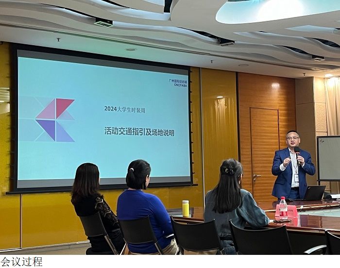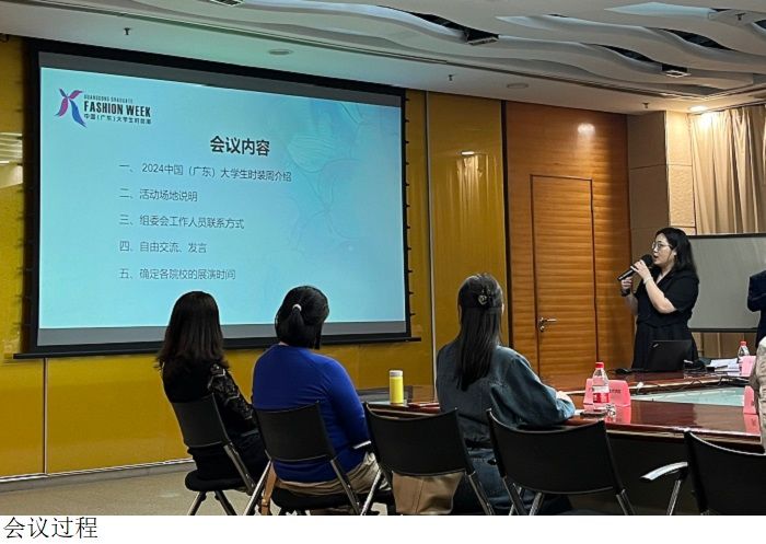 会上,广东省服装设计协会常务副秘书长、会员部主任曹苇向28所展演院校代表介绍了2024中国(广东)大学生时装周的活动安排、工作流程、展演指引,并就各院校组织安排做了细致的活动说明及解答。随后,广州国际轻纺城谢旋经理就活动交通指引及场地说明进行了详细讲解。