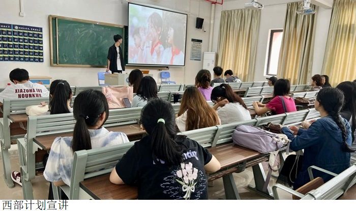 宣讲会详细介绍了“西部计划”的背景和意义,以及该计划在推动区域经济发展、促进民族团结进步等方面所起到的重要作用。接着,分享了众多志愿者在西部服务的感人故事,展现了他们的奉献精神和社会责任感。此外,宣讲会还为同学们介绍了西部计划详尽的参与流程,为有意向的同学们解答了疑惑,提供了实用的指导。