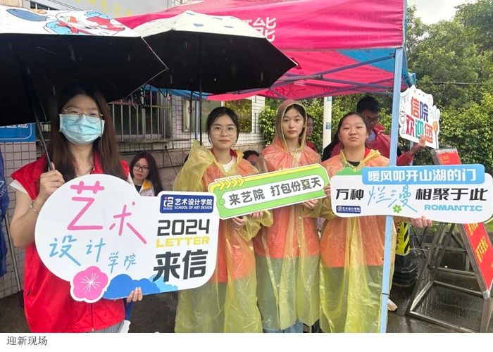在迎新现场,老师们和志愿者们满怀激动的心情,迎接每一位怀揣梦想与激情的新同学。即使在雨天,老师们和志愿者们也认真负责的帮助新同学及家长,做好迎新工作。