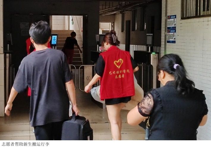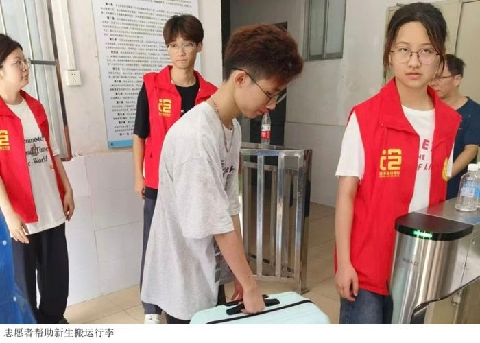 新生宿舍报道时,老师们和志愿者们带新同学去到所处的宿舍楼,帮忙扛行李,将温暖与关心传递给每位新同学,让长途跋涉的他们减轻了疲累,对接下来的大学生活充满期待与向往。