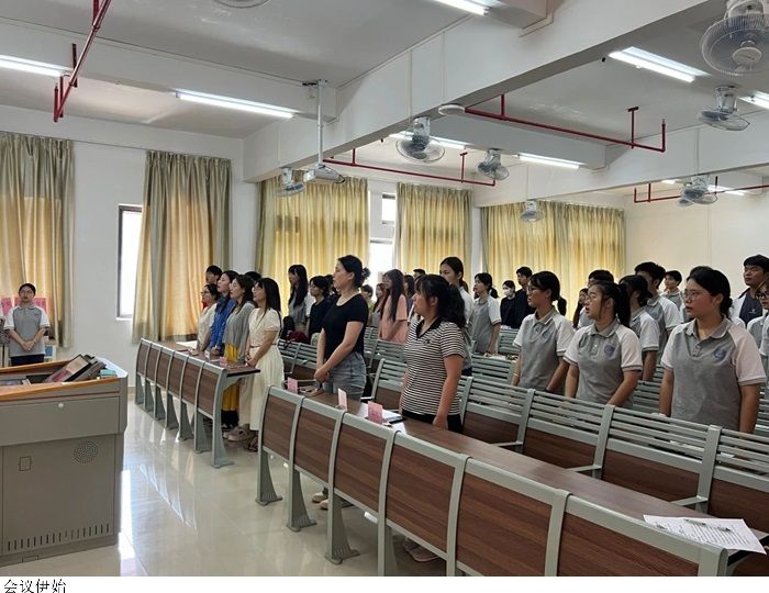 会议伊始,全体起立,奏唱国歌。