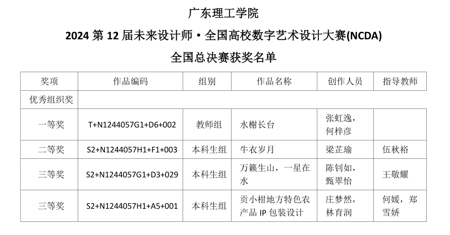 喜报:3044永利集团官网师生荣获第12届未来设计师·全国高校数字艺术设计大赛(NCDA)国家奖项