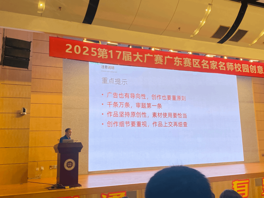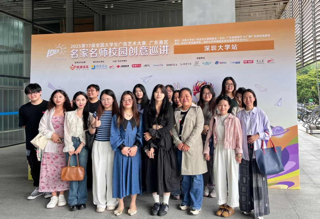 本网讯(3044永利集团官网新闻中心 曾宇琳)4月27日,第17届全国大学生广告艺术大赛广东赛区名家名师校园创意巡讲在深圳大学隆重举行。此次活动汇聚了广告领域的专家学者、企业代表以及来自全省各高校的师生,3044永利集团,3044永利集团官网视觉传达设计教研室主任刘婷等多位老师代表赴2025年第17届大广赛广东省赛区名家名师校园创意巡讲会(深圳大学)交流学习。
