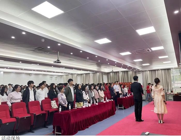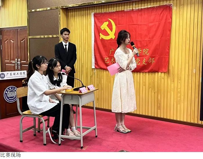 活动正式开始,全体起立 奏唱国歌。艺术系党总支书记赵宁上台致辞,他表示党的百年党史蕴含着丰富的政治营养和精神瑰宝,党的光荣传统和优良作风蕴藏着真理的力量、实践的力量与人格的力量,是我们党宝贵的财富。希望进入到决赛的各位同学不负青春韶华乘风破浪往前闯,以赛促学,赛出成绩。