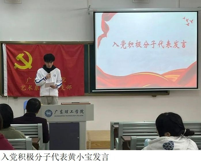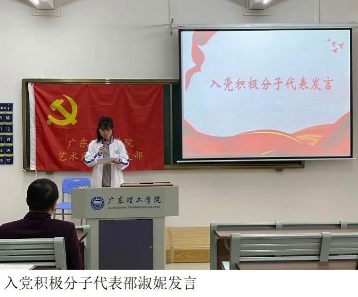 首先,入党积极分子代表邵淑妮、黄小宝上台发言,他们表示自己要端正入党动机,认真学习党的基本理论知识,不断完善自己,不管在学习上还是在生活中,要时刻以党员标准严格要求自己,努力向党组织看齐。
