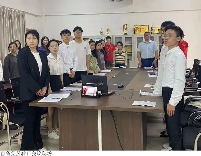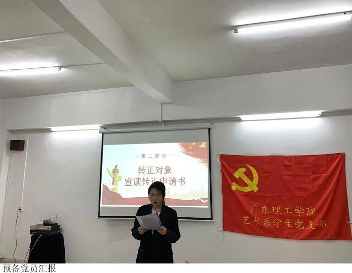 各入党介绍人一致认为李蕾等十二名预备党员同志预备期间热爱祖国,关心国家时事,思想端正,努力学习,勤奋刻苦,积极投身志愿服务活动等,他们已经具备成为一名正式党员的基本条件。然后预备党员同志暂退会场外等候,与会党员进行了三分钟讨论并进行无记名投票,大会全票通过十二名同志按期转为正式党员。本次转正的正式党员举起右拳面向党旗,宣读入党誓词。