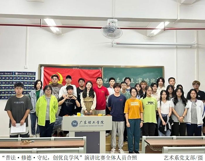 本网讯(艺术系新闻中心 周世丽/陈宛岸)为加强道德修养和法治教育,坚持落实“依法治校、以德治校”的教育理念。艺术系于2022年10月25日晚上19:00在52栋艺术楼52503室开展“普法·修德·守纪,创优良学风”演讲比赛。本次的演讲比赛由艺术系学生党支部书记易晶晶老师以及学生党支部负责人、部长及部分部员担任评委。