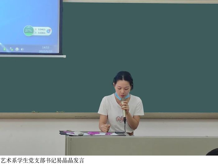 艺术系学生党支部书记易晶晶表示,作为一名辅导员,要有大眼界,落实立德树人根本任务,传承红色基因,让“听党话、跟党走”的信念成为自觉追求;要有大情怀,把自己的温暖和情感倾注到每一个学生身上,让每一个学生都健康成长;要有大人格,以道德修养带动学生,以人格魅力打动学生。如此,才能真正成为习近平总书记口中“学生为学、为事、为人的大先生”。让我们为实现“为党育人、为国育才”的使命重托而勇毅前进,以出类拔萃的成绩迎接党的二十大胜利召开!