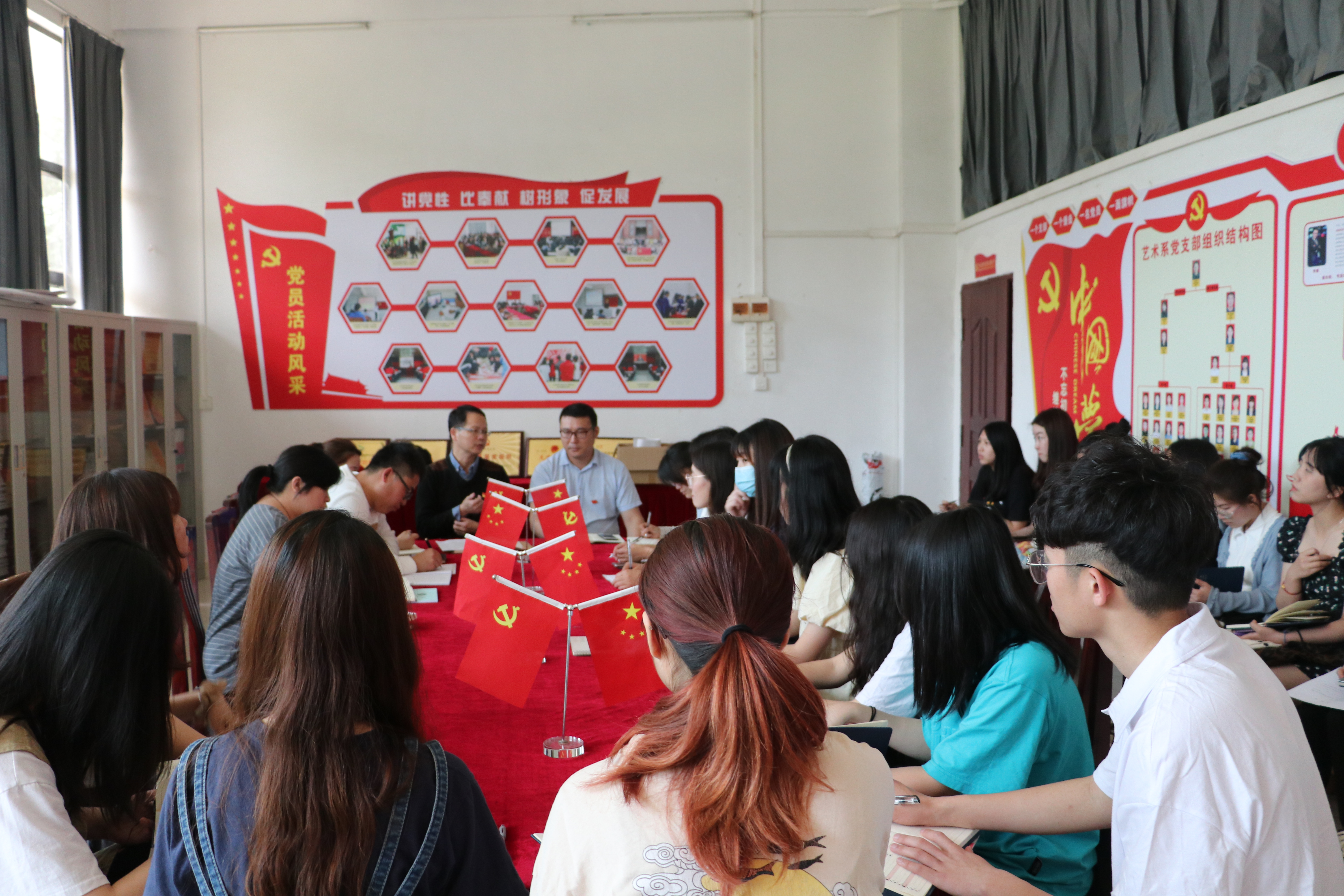 本网讯(艺术系党支部 钟雨垌)深入学习领会习近平总书记关于党的历史重要论述的理解、深化对开展党史学习教育意义的认识,艺术系于2021年3月16日星期二中午12时20分在党员活动室召开了党史学习动员教育大会,本次会议参会人员有艺术系党总支赵宁书记、艺术系教工党支部书记花仕旺、学工部长吴云老师、学生党支部书记易晶晶老师、分团委书记路正玉老师、奖助贷负责人张海玲老师、易班工作站负责人涂瀛老师、考证负责人龙媛老师、辅导员余嘉丽以及艺术系学生党支部全体成员和艺术系团委学生会主席团成员
