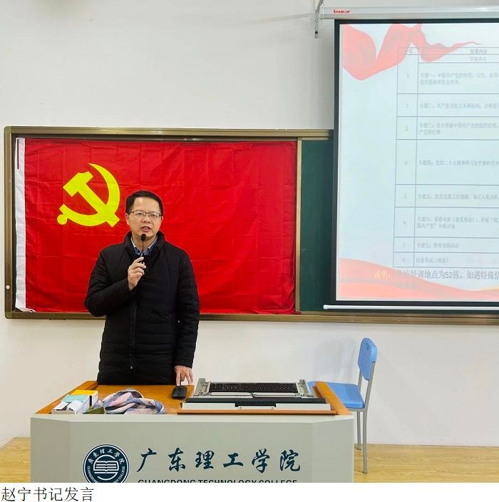 最后赵宁书记强调,大学生是国家宝贵的人才资源,是民族的希望,是祖国的未来。通过本次党校培训班的学习,使广大学生进一步了解党的有关知识,掌握党的基本理论知识,引导他们以党员的标准严格要求自己,使学生牢记党的指导思想,加强党性修养、争做中国特色社会主义的合格建设者和可靠的接班人。