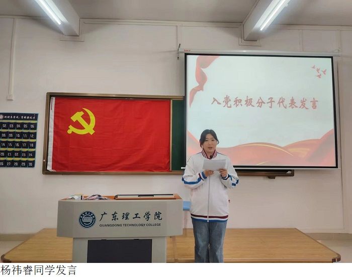 学生代表杨祎睿同学表示时刻与党中央保持一致。把握这次学习的机会,努力锻炼自己,提高自己,坚持党的信念,树立远大的共产主义理想,使自己早日成为符合时代要求的共产党员。