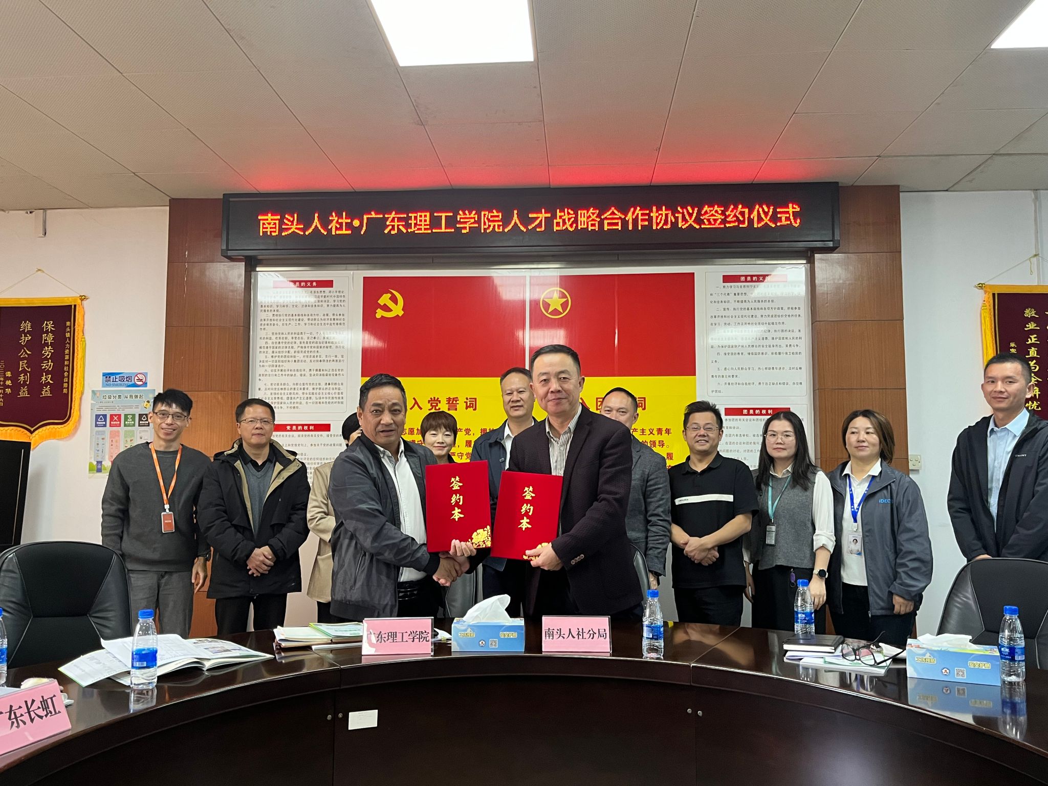座谈会上,张宗珊副书记介绍了学校专业布局、人才培养及产教融合情况,表示希望深化与南头镇政府和企业合作关系,在校地、校企协作、共建实习就业平台等领域强化对接合作;梁国豪副镇长介绍了南头镇的产业规划与人才需求情况,吴永高局长介绍了南头人社分局校企对接服务相关举措;各参会企业负责人分享了各自企业用工需求与合作意向,三方达成广泛合作共识。座谈会后,双方正式签订人才战略合作协议,为后续校地深度合作奠定基础。